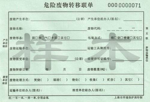 危險廢物轉移聯單介紹